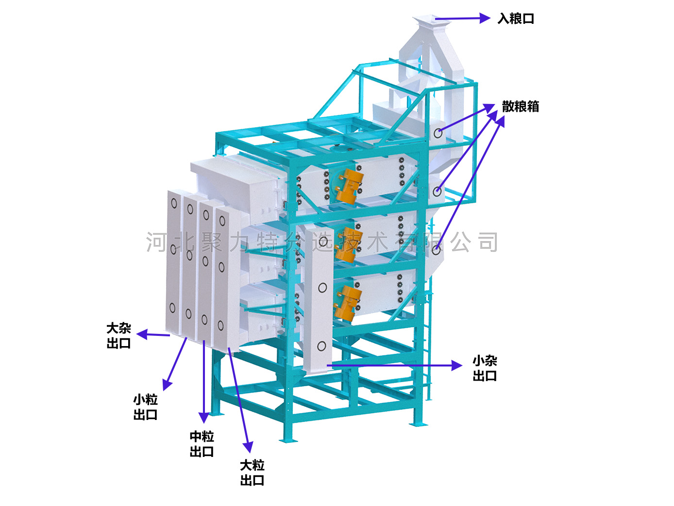 2、整機(jī)結(jié)構(gòu)緊湊,操作簡(jiǎn)便,清機(jī)方便,能有效防止混雜;