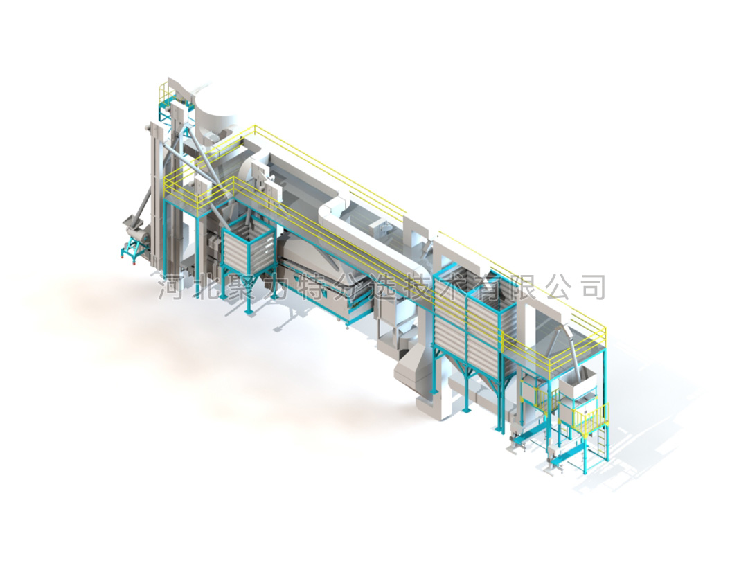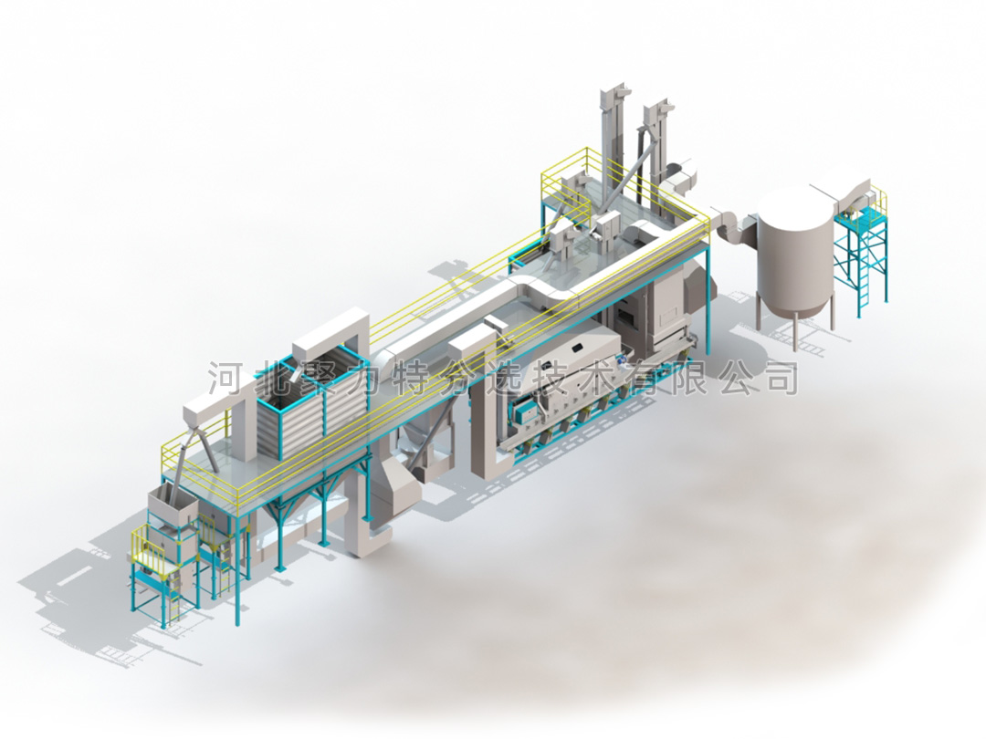 種子加工生產(chǎn)線由風(fēng)篩清選機(jī)、比重精選機(jī)、種子包衣機(jī)、定量包裝秤、提升設(shè)備、除塵系統(tǒng)、控制系統(tǒng)組成。