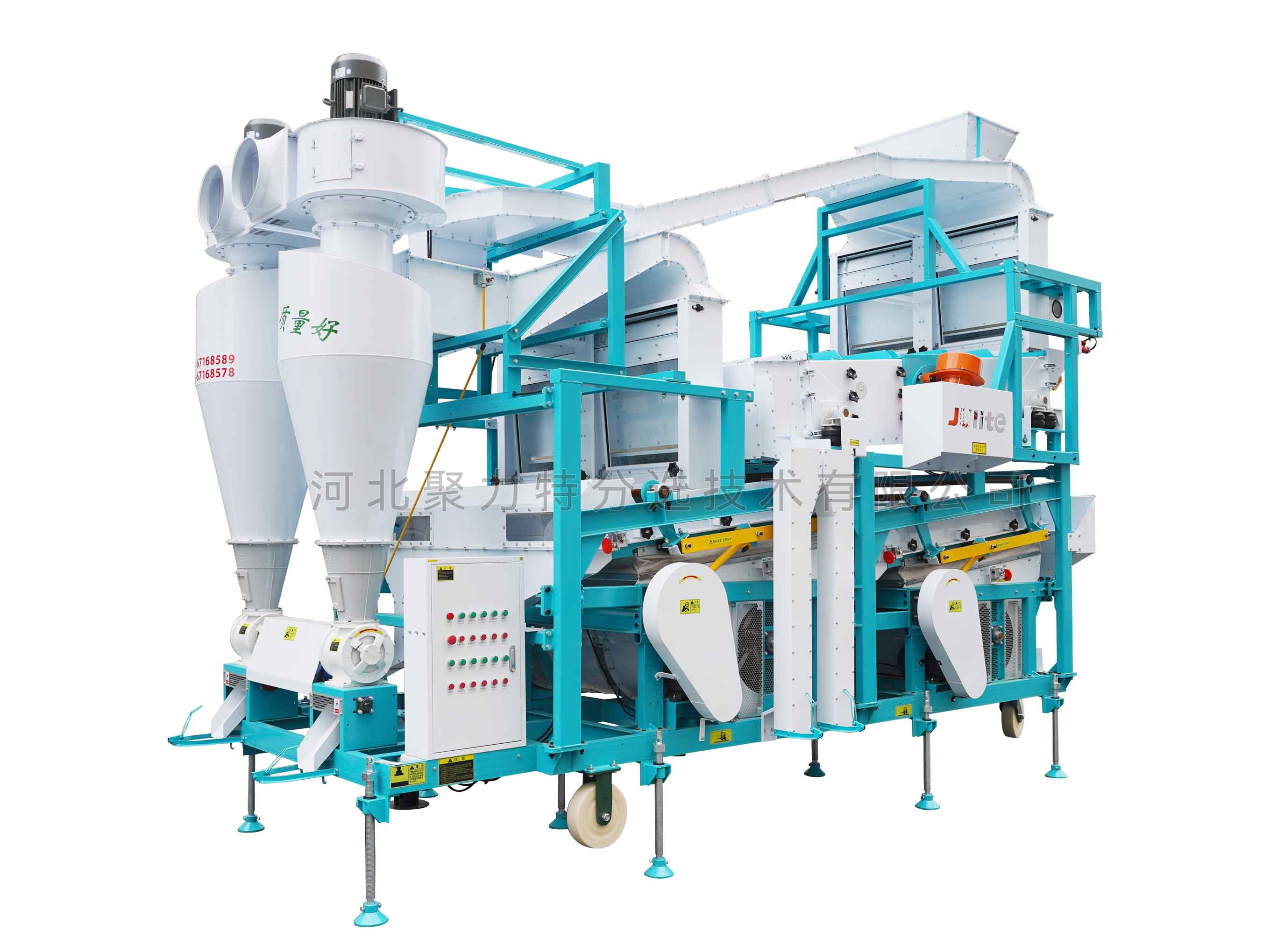 3、除塵環(huán)保:前后風(fēng)篩配置獨(dú)立的旋風(fēng)除塵器和風(fēng)機(jī),調(diào)控方便,操作靈活,加工過程除塵環(huán)保;